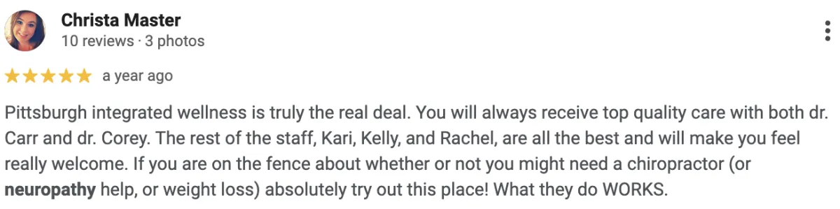 As part of this Neuropathy special, you will receive the following at your appointment at Pittsburgh Integrated Wellness: